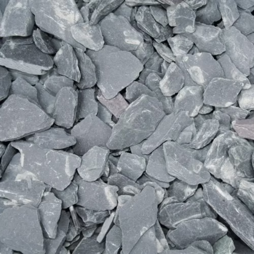 20mm Blue Slate Chippings are natural, flat, and angular slate stones.