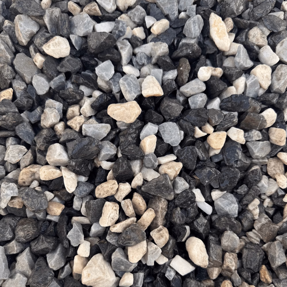 Black ice gravel adds a contemporary touch to your landscaping, a premium blend of black basalt, grey, and ice white chippings. The contrasting tones create a bold, modern look that enhances driveways, pathways, garden borders, and decorative features.