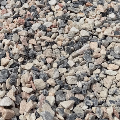 Blossom 20mm gravel is a angular marble gravel with a blend of pinks, greys, whites and peach stones. Similar to the Flamingo gravel, the mix of tones, especially the peach, creates a clean and vibrant finish that shines when wet, ideal for adding a fresh, modern touch to any outdoor space.